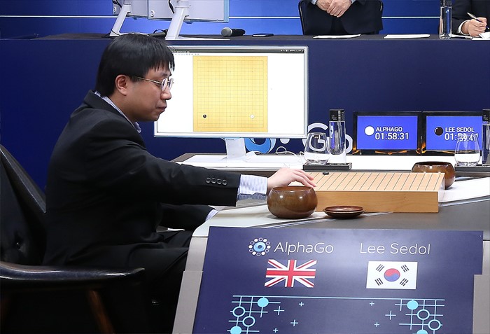 (서울=포커스뉴스) 9일 오후 서울 중구 포시즌스호텔에서 열린 구글 딥마인드 챌린지 매치, 이세돌 9단과 인공지능 바둑프로그램 알파고와의 첫번째 대국에 참석한 알파고 대리인 아자 황 박사가 대국을 하고 있다. <사진제공=구글>