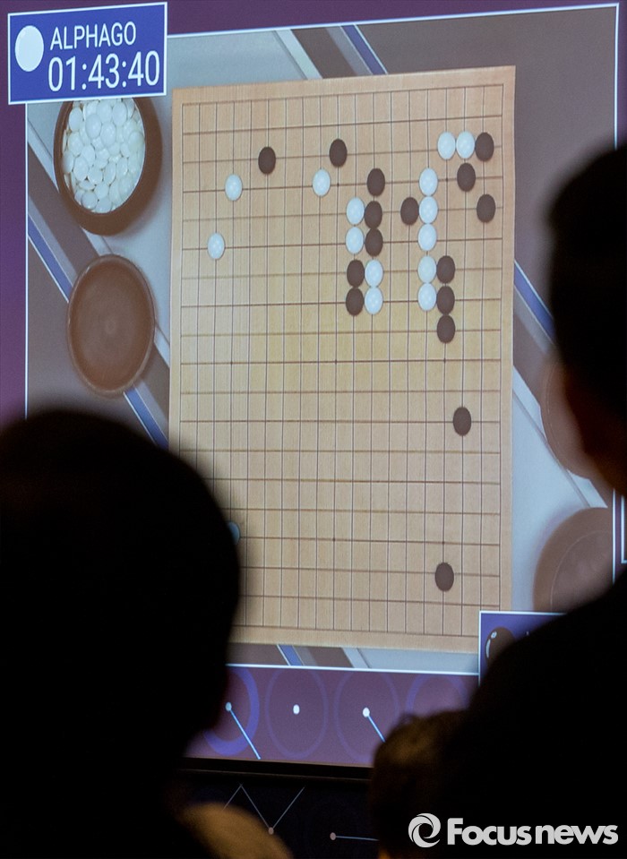 (서울=포커스뉴스) 9일 오후 서울 종로구 포시즌스 호텔에서 열린 이세돌 9단과 알파고의 '구글 딥마인드 챌린지 매치'에서 관계자들이 대형화면에 비친 대국을 관전하고 있다.