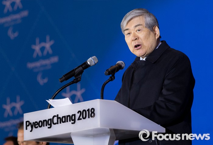 (춘천=포커스뉴스) 9일 오후 강원 춘천의암빙상장에서 제2회 2018 평창 패럴림픽 데이에 참석한 조양호 평창동계올림픽 조직위원장이 환영사를 하고 있다.