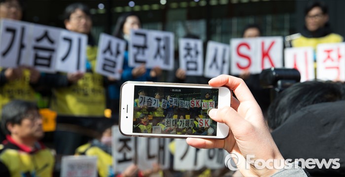 (서울=포커스뉴스) 2011년 원인 미상의 폐손상 등으로 임산부와 영유아 143명의 목숨을 앗아간 '가습기 살균제 사망사건'과 관련해 피해자들과 유가족들이 이번에는 살균제 원료 공급 업체인 SK케미칼 전·현직 임원 14명을 고발했다.
