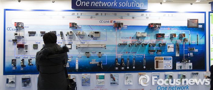 (서울=포커스뉴스) 9일 오후 서울 강남구 코엑스에서 열린 '오토메이션 월드 2016’ CC-LINK(CLPA) 부스에서 관람객들이 CC링크 네트워크 계통도를 살펴보고 있다.