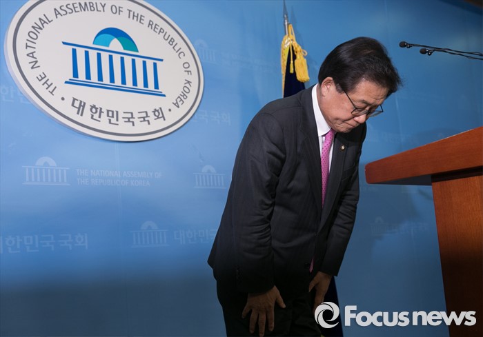(서울=포커스뉴스) 새누리당 현역 의원 중 공천배제 통보를 받은 김태환 의원이 9일 오후 서울 여의도 국회 정론관에서 탈당 및 20대 총선 무소속 출마 기자회견을 마친 뒤 인사하고 있다.
