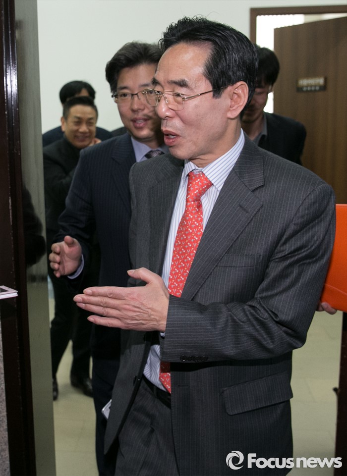 (서울=포커스뉴스) 2차 컷오프(공천배제) 발표를 앞둔 홍창선 더불어민주당 공천관리위원장이 10일 오전 서울 여의도 국회에서 비공개 회의를 마친뒤 나서고 있다.