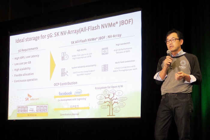 이날 SK텔레콤은 페이스북과의 추가협력 방안도 밝혔다. SK텔레콤은 9일(현지시간) 미국 캘리포니아 산호세에서 열린 ‘OCP(Open Compute Project) 서밋’에 참가해 스토리지(저장) 기술의 진화 방향을 제시하고, 페이스북과의 공동 협력 방안을 공개했다.