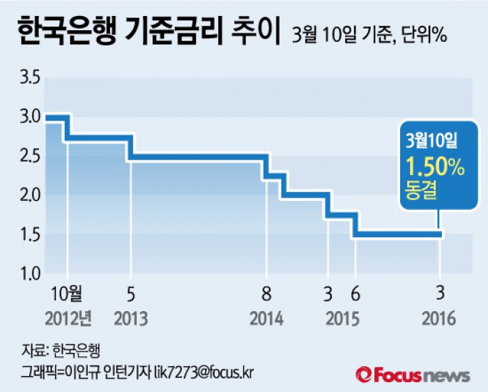 (서울=포커스뉴스) 한국은행이 기준금리를 9개월째 같은 수준인 연 1.5%로 동결했다.