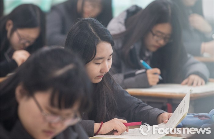 (서울=포커스뉴스) 10일 오전 서울 서대문구 명지고등학교에서 1학년 학생들이 2016학년도 첫 전국연합학력평가를 치고 있다.