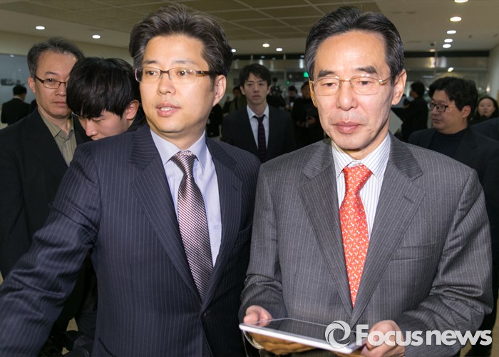 (서울=포커스뉴스) 홍창선(오른쪽) 더불어민주당 공천관리위원장이 10일 오전 서울 여의도 국회 정론관에서 20대 총선 경선 및 단수지역과 2차 공천배제(컷오프) 명단 발표를 마친 뒤 퇴장하고 있다.