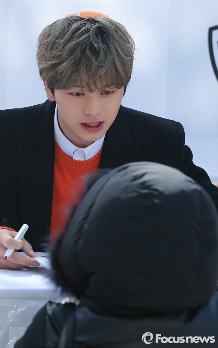 (서울=포커스뉴스) 10일 오후 서울 서대문구 이화여자대학교에서 열린 '캠퍼스 어택' 행사에 참석한 가수 육성재가 한 팬에게 사인을 해주고 있다.
