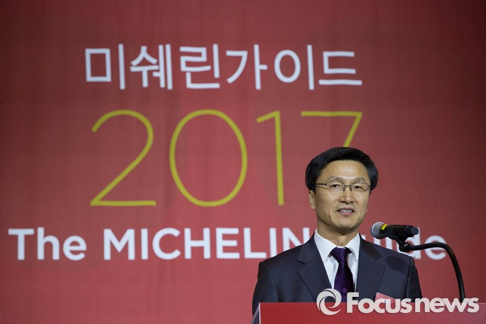 (서울=포커스뉴스) 10일 오전 서울 종로구 포시즌스 호텔에서 열린 미쉐린 가이드(미슐랭가이드) 2017 서울편 발간 기자회견에서 김보형 미쉐린코리아 사장이 발표를 하고 있다.
