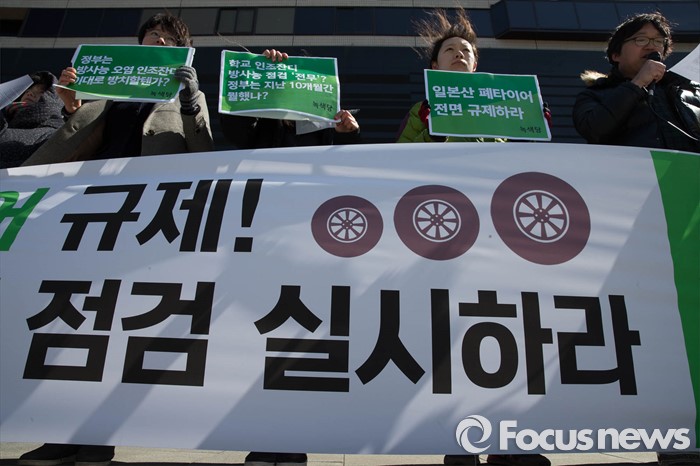 이날 녹색당과 청소년녹색당은 이날 기자회견을 통해 지난 2011년 후쿠시마 참사 이후 전국 751개교의 인조잔디 조성에 일본산 폐타이어가 사용됐다며 정부의 조사를 요구했다.