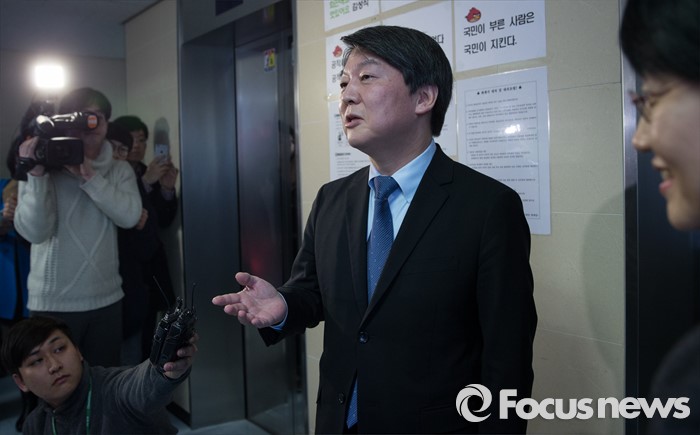 (서울=포커스뉴스) 10일 오후 서울 마포구 국민의당 당사에서 안철수 국민의당 상임공동대표가 기자들의 질문을 받고 있다.