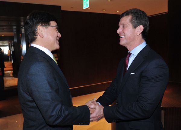 (서울=포커스뉴스) 정진엽 보건복지부 장관은 10일 오전 알렉스 고르스키(Alex Gorsky) 글로벌 총 회장, 게리 푸르든(Gary Pruden) 글로벌 의료기기부문 회장 등 존슨앤드존슨 회장단과 면담을 가졌다.