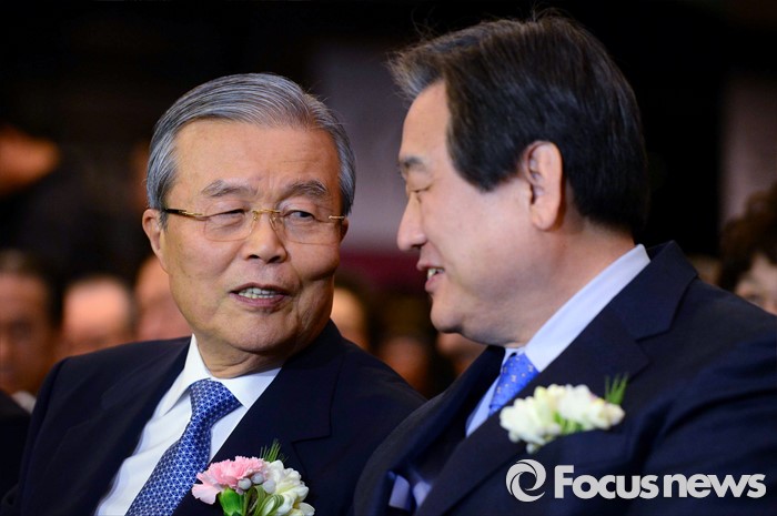(서울=포커스뉴스) 김무성(오른쪽) 새누리당 대표와 김종인 더불어민주당 비대위 대표가 10일 오후 서울 종로구 세종문화회관 세종홀에서 열린 김종필 전 국무총리의 정치인생을 담은 '김종필 증언록' 출판기념회에 참석해 대화하고 있다.