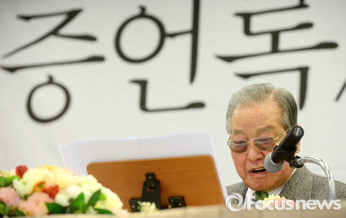 (서울=포커스뉴스) 김종필 전 국무총리가 10일 오후 서울 종로구 세종문화회관 세종홀에서 열린 자신의 '김종필 증언록' 출판기념회에 참석해 인사말을 하고 있다.