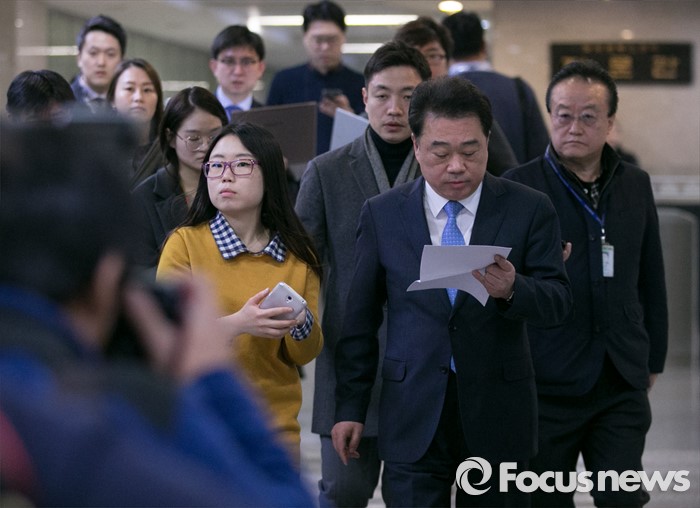 (서울=포커스뉴스) 김성수 더불어민주당 대변인이 11일 오전 서울 여의도 국회 정론관에서 20대 총선 경선 및 단수지역과 3차 공천배제(컷오프) 관련 브리핑을 위해 입장하고 있다.