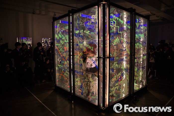 (서울=포커스뉴스) 11일 오후 서울 영등포구 안국약품 갤러리 AG에서 가수 솔비가 '블랙스완-거짓된 자아들' 쇼케이스에 참석해 관련 공연을 선보이고 있다.