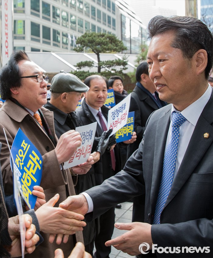 (서울=포커스뉴스) 20대 총선 공천 배제된 정청래 더불어민주당 의원이 12일 오전 공직선거후보자추천재심위원회에 재심신청서를 제출하기 위해 서울 여의도 더민주 당사를 향하며 지지자들과 인사하고 있다.