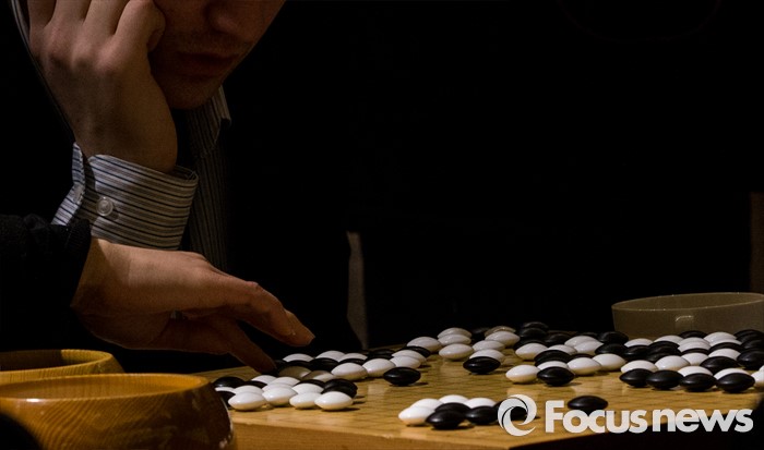 (서울=포커스뉴스) 이세돌 9단과 인공지능 알파고의 '구글 딥마인드 챌린지 매치' 3차 대국이 열린 12일 오후 서울 종로구 포시즌스 호텔 내 공개해설장에서 한 관계자가 대국을 따라 돌을 놓고 있다.