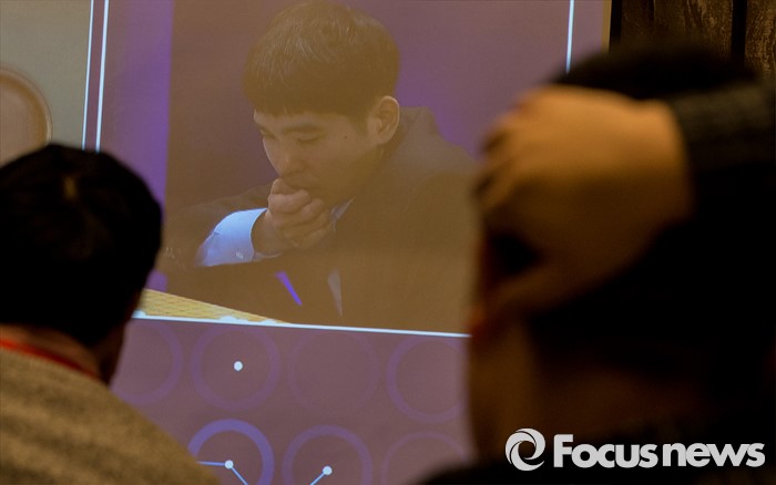 (서울=포커스뉴스) 이세돌 9단과 인공지능 알파고의 '구글 딥마인드 챌린지 매치' 3차 대국이 열린 12일 오후 서울 종로구 포시즌스 호텔 내 공개해설장에서 취재진이 대국을 지켜보고 있다.