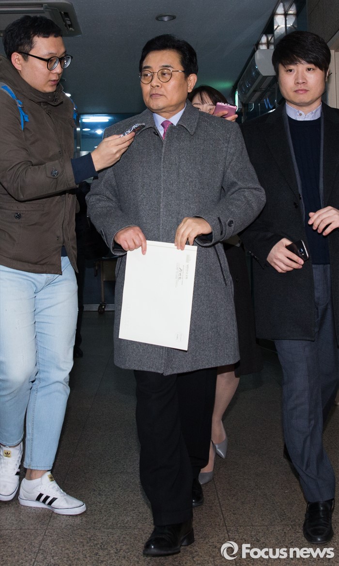 (서울=포커스뉴스) 20대 총선 공천 배제된 전병헌 더불어민주당 의원이 13일 오전 공직선거후보자추천재심위원회에 재심신청서를 제출하기 위해 서울 여의도 당사로 들어서고 있다.