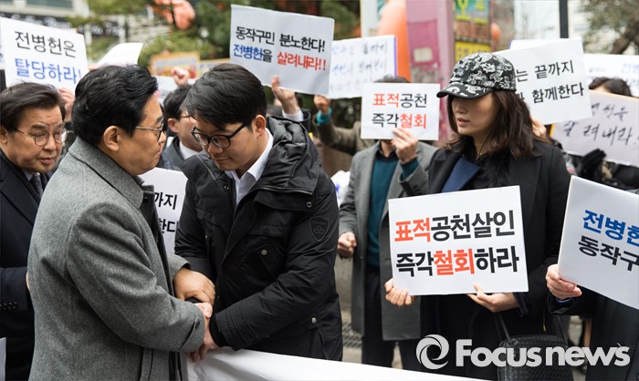 | △ 지지자들과 인사하는 전병헌 의원 |