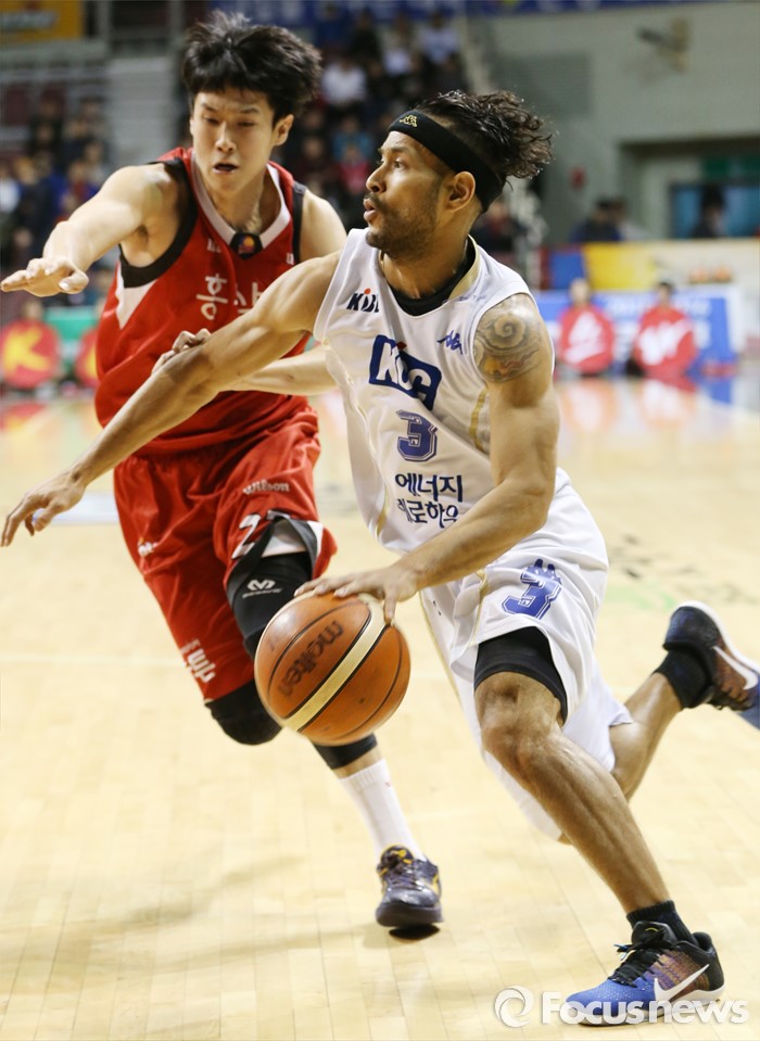 (안양=포커스뉴스) 13일 안양실내체육관에서 열린 2015-2016 프로농구 KGC-KCC 4강플레이오프 4차전에서 KCC 전태풍이 KGC 전성현의 마크를 제치며 골밑 돌파를 시도하고 있다.