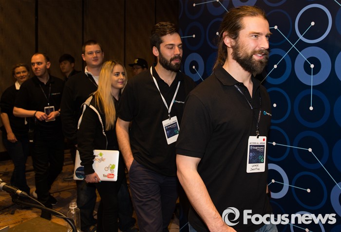 (서울=포커스뉴스) 13일 오후 서울 종로구 포시즌스호텔에서 열린 구글 딥마인드 챌린지 매치 제4국 기자회견에 구글 딥마인드의 알파고 팀원들이 참석하고 있다.