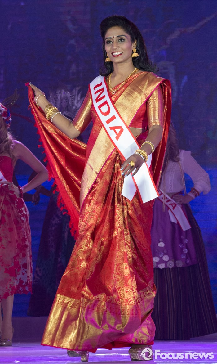 | △ 미시즈월드 미인대회, 인도 전통의상입은 참가자 |