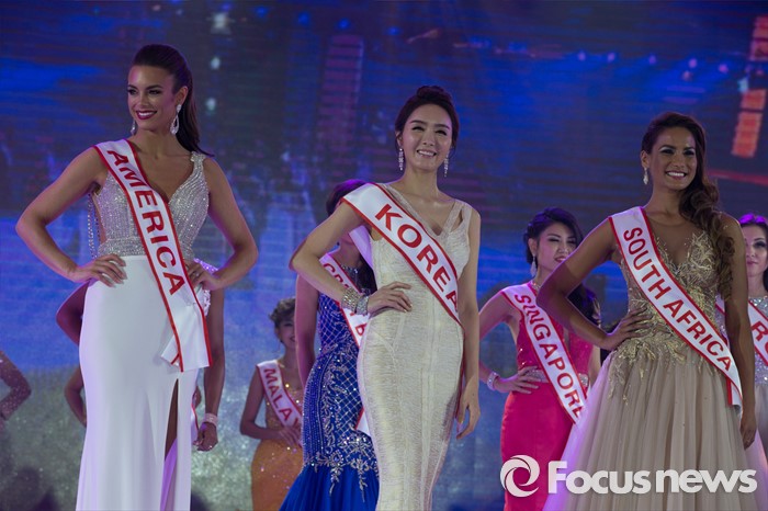 (동관/중국=포커스뉴스)중국 광동성 동관에서 12일 열린 제27회 미시즈월드 미인대회에서 참가자들이 드레스를 입고 포즈를 취하고 있다. 우승은 남아프리카 공화국의 캔디스 드보라 아브람스, 2위는 폴란드의 클라우디아 마트라크 두덱, 3위는 한국의 최은혜가 차지했다.