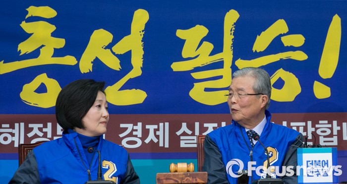 (서울=포커스뉴스) 김종인(오른쪽) 더불어민주당 비대위 대표와 박영선 비대위원이 14일 오전 서울 여의도 국회에서 열린 비상대책위원회의에 참석해 발언 순서와 관련 대화하고 있다.