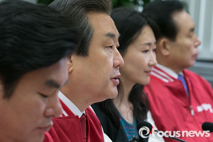 (서울=포커스뉴스) 김무성(왼쪽 두번째) 새누리당 대표가 14일 오전 서울 여의도 국회에서 열린 최고위원회의에 참석해 모두발언하고 있다.