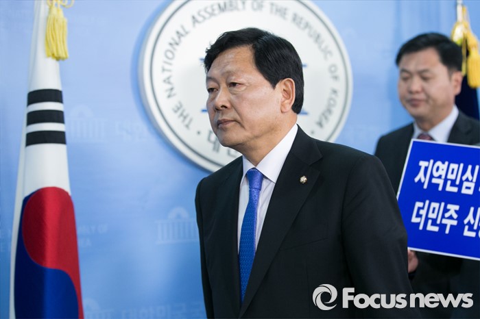 (서울=포커스뉴스) 공천 배제가 결정된 강동원 더불어민주당 의원이 14일 오전 서울 여의도 국회 정론관에서 탈당과 함께 무소속 출마를 선언한 뒤, 단상을 내려오고 있다.