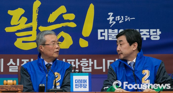 (서울=포커스뉴스) 김종인(왼쪽) 더불어민주당 비대위 대표와 이종걸 원내대표가 14일 오전 서울 여의도 국회에서 열린 비상대책위원회의에 참석해 발언 순서와 관련 대화하고 있다.
