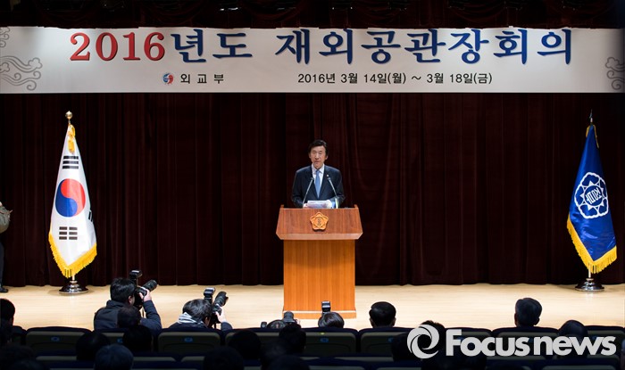 (서울=포커스뉴스) 14일 오전 서울 종로구 외교부에서 2016년도 재외공관장회의에 참석한 윤병세 외교부 장관이 인사말을 하고 있다.