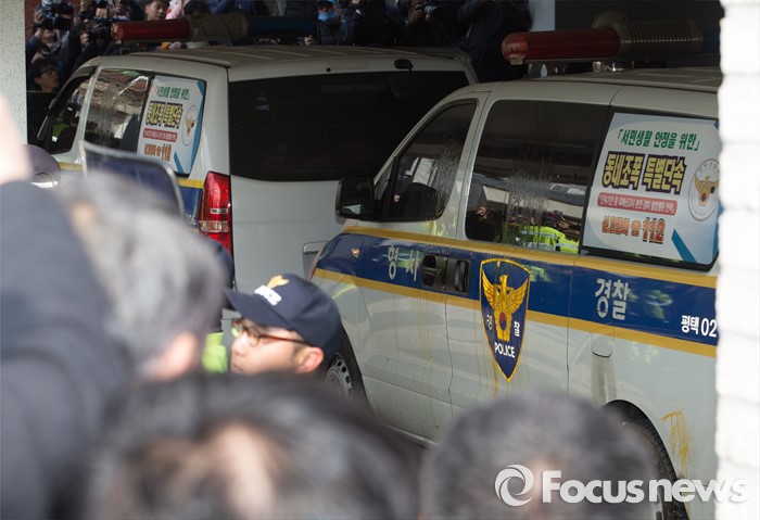 (평택=포커스뉴스) 학대와 무관심 속에 살해당한 신원영 군의 계모 김모 씨와 친부 신모 씨가 14일 오후 경기도 평택시 포승읍 자택에 도착, 기다리던 시민단체 회원들과 시민들이 계란을 던지고 있다.