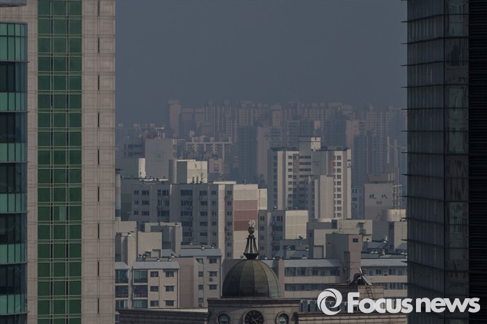 (서울=포커스뉴스) 서울 한 낮 기온이 11도까지 상승한 14일 오후 서울 강남구에서 바라본 도심에 보통 수준의 미세먼지가 끼어 있다.