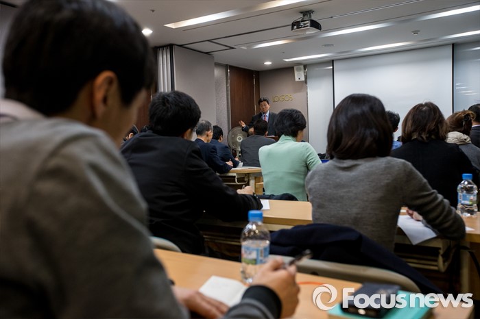(서울=포커스뉴스) 미국에서 파생금융상품 키코(KIKO) 소송 재개를 이끌어 낸 법무법인 김앤배의 김봉준 대표변호사가 14일 오후 서울 강남구 로고스 법무법인 대회의실에서 열린 '키코사건 미국 직소송 설명회'에서 피해를 입은 국내기업 관계자들에게 소송 진행 상황을 설명 하고 있다.