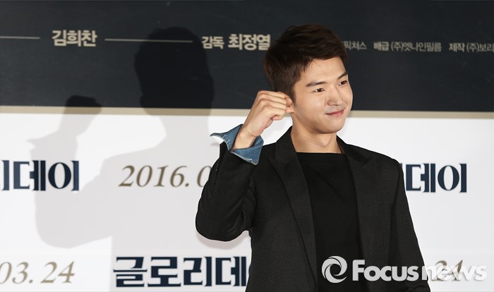 (서울=포커스뉴스) 14일 오후 서울 성동구 왕십리 CGV에서 열린 영화 '글로리데이' 언론시사회에 참석한 배우 김희찬이 포토타임을 갖고 있다.