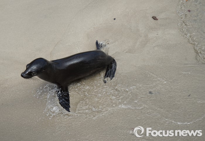 (갈라파고스=포커스뉴스)바다사자새끼들은 약 3년간 어미를 따라 다니며 젖을 먹는다. 천적이 없는 갈라파고스는 바다사자들의 지상 낙원이다. <사진제공=전수경>