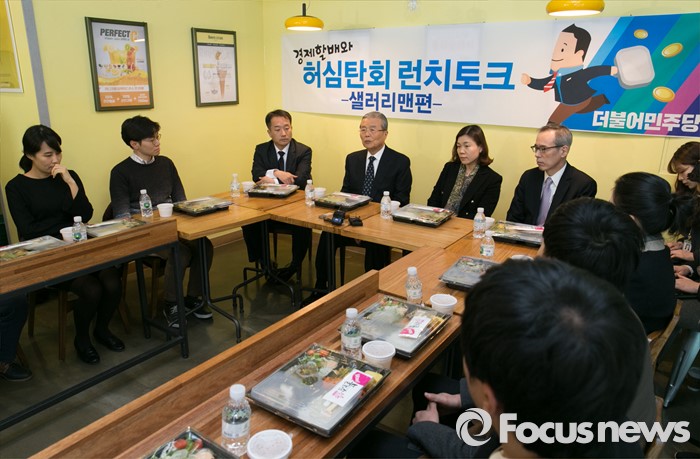 | △ 샐러리맨들과 만난 김종인 더민주 비대위 대표 |