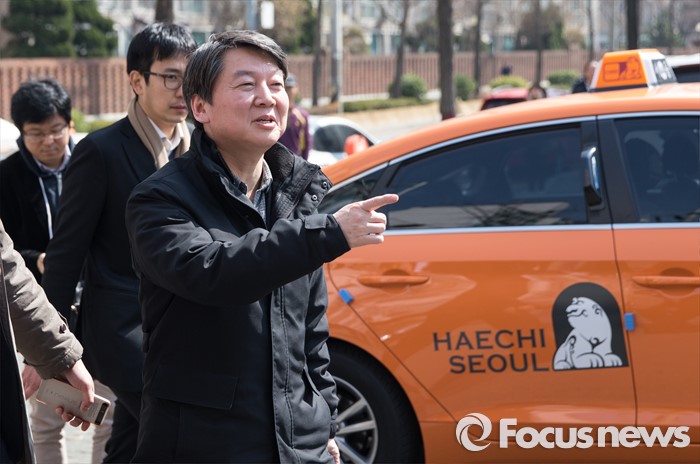| △ 택시 기사와 간담회 갖는 안철수 대표 |