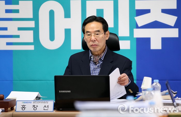 (서울=포커스뉴스) 홍창선 더불어민주당 공천관리위원장이 15일 오전 서울 여의도 당사에서 20대 총선 비례대표 후보 면접 심사를 하고 있다.