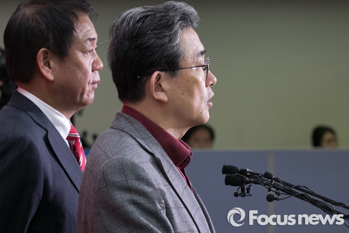 (서울=포커스뉴스) 이한구(오른쪽) 새누리당 공천관리위원장과 박종희 제2사무부총장이 15일 오후 서울 여의도 당사에서 20대 총선 3차 경선결과를 발표를 하고 있다. 이날 새누리당 공천관리위원회는 서울 종로구 선거구에 오세훈 전 서울시장이 경선 후보로 확정됐다고 전했다.