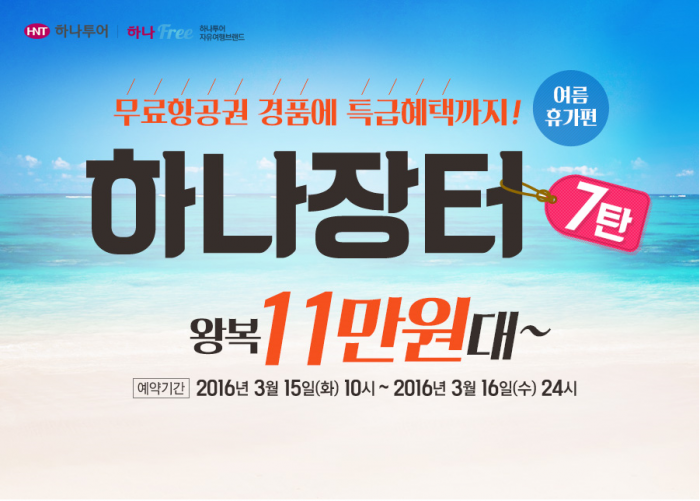 (서울=포커스뉴스) 하나투어가 오는 15일부터 16일까지 이틀간 대표적인 항공권 특가 정기 프로모션인 '하나장터'를 개최한다.