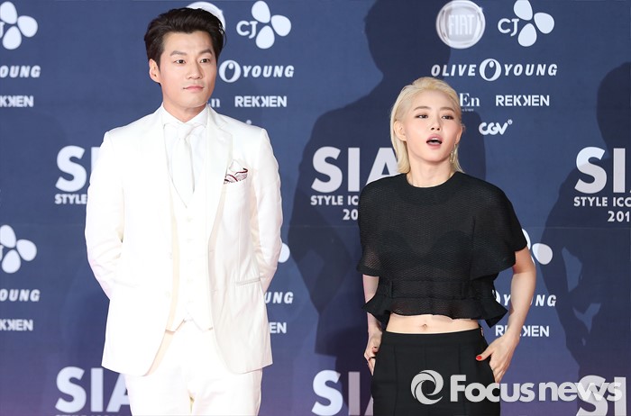 (서울=포커스뉴스) 15일 오후 서울 동대문구 동대문 디자인 플라자에서 열린 '스타일 아이콘 아시아 2016' 에 참석한 배우 이천희(왼쪽)와 황승언이 포토타임을 갖고 있다.