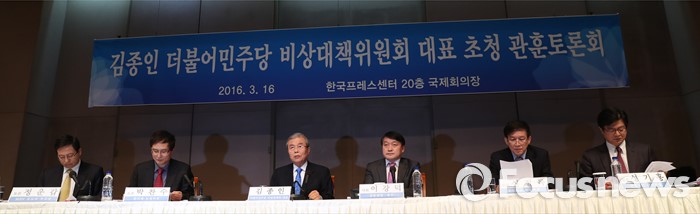 (서울=포커스뉴스) 김종인 비대위 대표가 16일 오전 서울 중구 한국프레스센터 국제회의장에서 열린 '김종인 더불어민주당 비상대책위원회 대표 초청 관훈토론회'에 참석해 모두발언을 하고 있다.