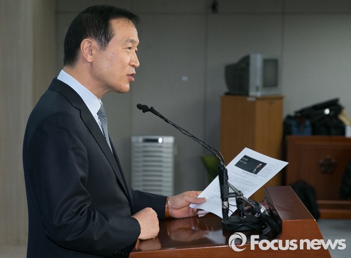 (서울=포커스뉴스) 20대 총선 후보 공천 탈락한 임태희 전 새누리당 의원이 16일 오전 서울 여의도 국회 정론관에서 탈당 및 무소속 출마 기자회견을 하고 있다.