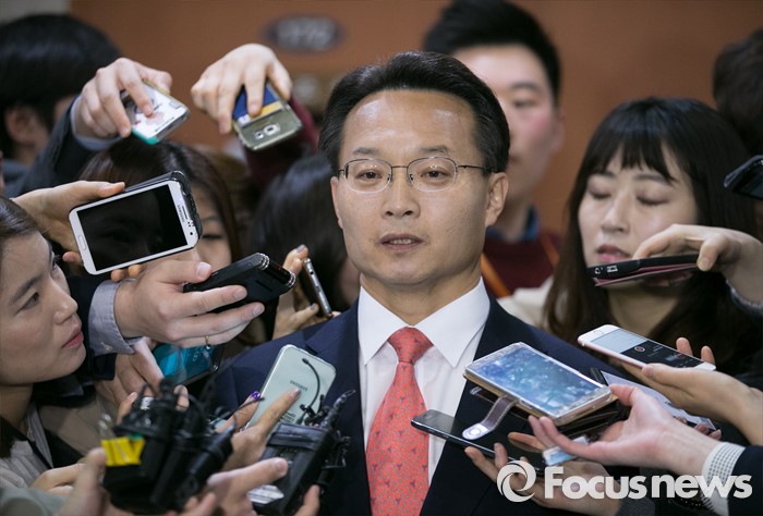 (서울=포커스뉴스) 공천 배제(컷오프)된 조해진 새누리당 의원이 16일 오전 서울 여의도 국회 정론관에서 공천관리위원회의 결정에 반발하는 내용의 기자회견을 마친 뒤 취재진 질문에 답하고 있다.