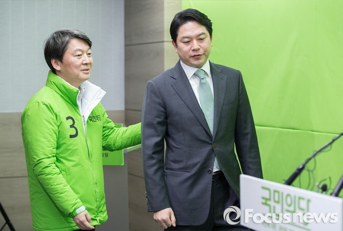 (서울=포커스뉴스) 안철수 국민의당 상임공동대표(왼쪽)가 16일 오후 서울 마포구 국민의당 당사에서 더불어민주당을 탈당한 정호준 의원의 입당 소식을 알리기 위해 정 의원과 함께 기자회견장을 들어서고 있다.