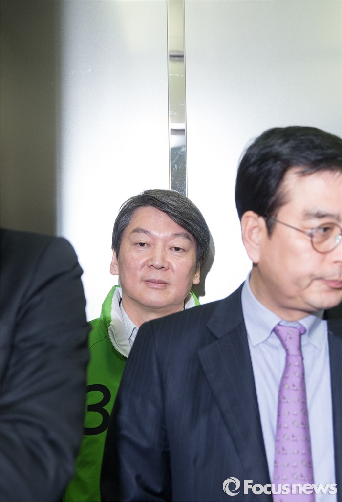 (서울=포커스뉴스) 안철수 국민의당 상임공동대표(가운데)가 16일 오전 서울 마포구 국민의당 당사에서 정호준 의원의 입당 소식을 전한 후 길을 나서고 있다.
